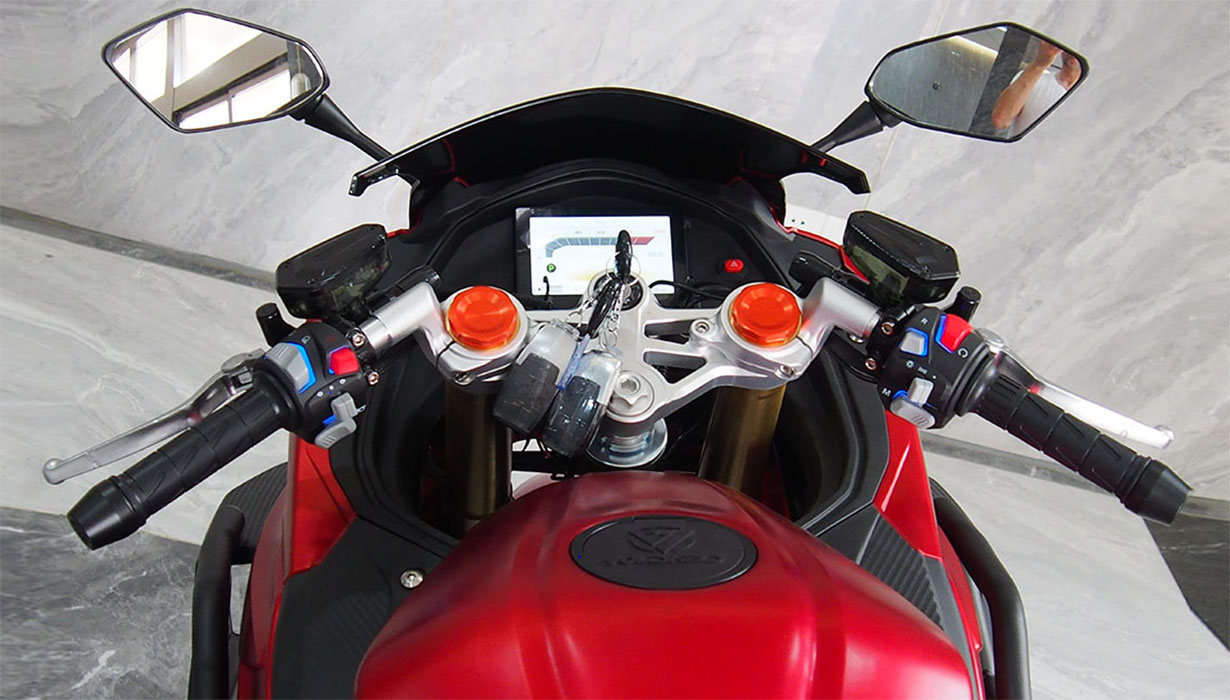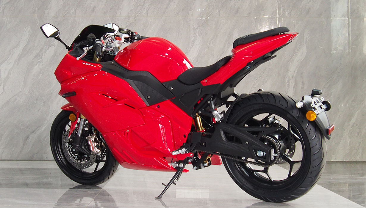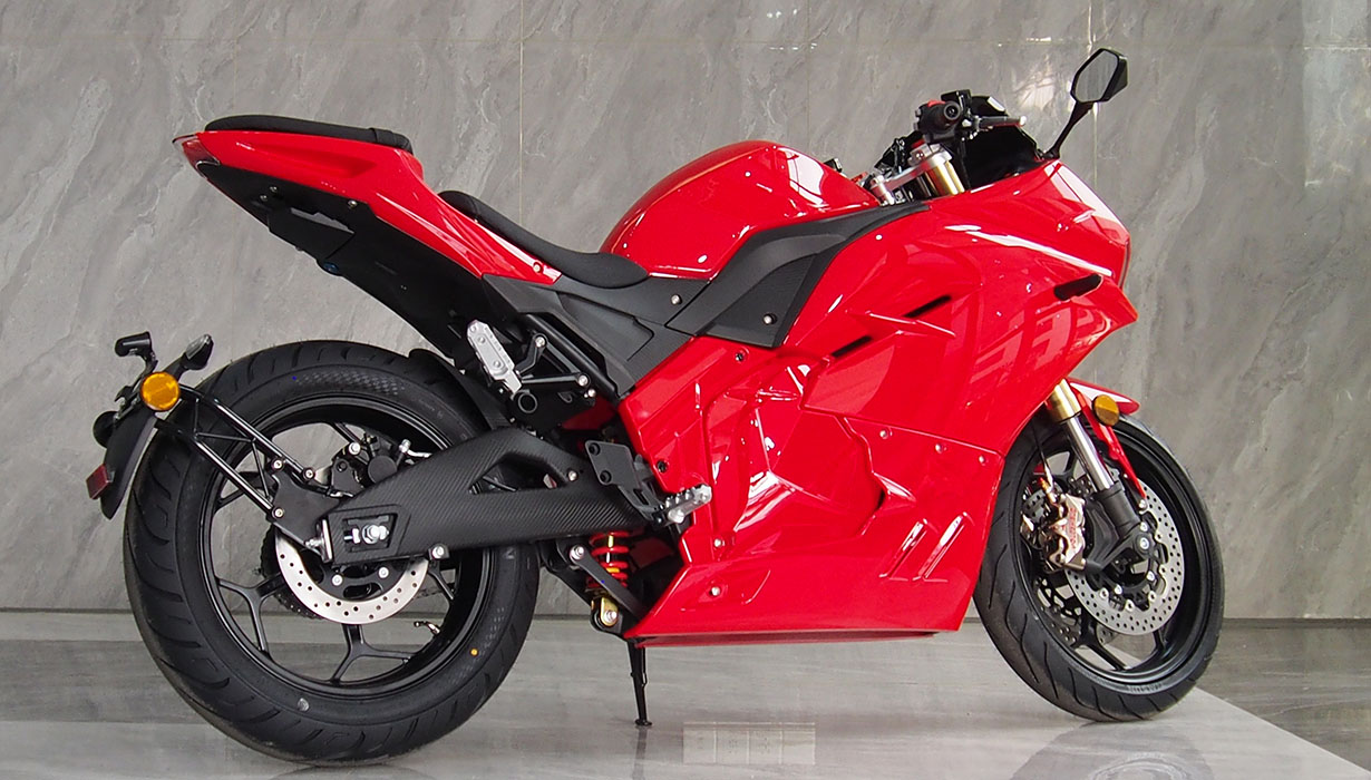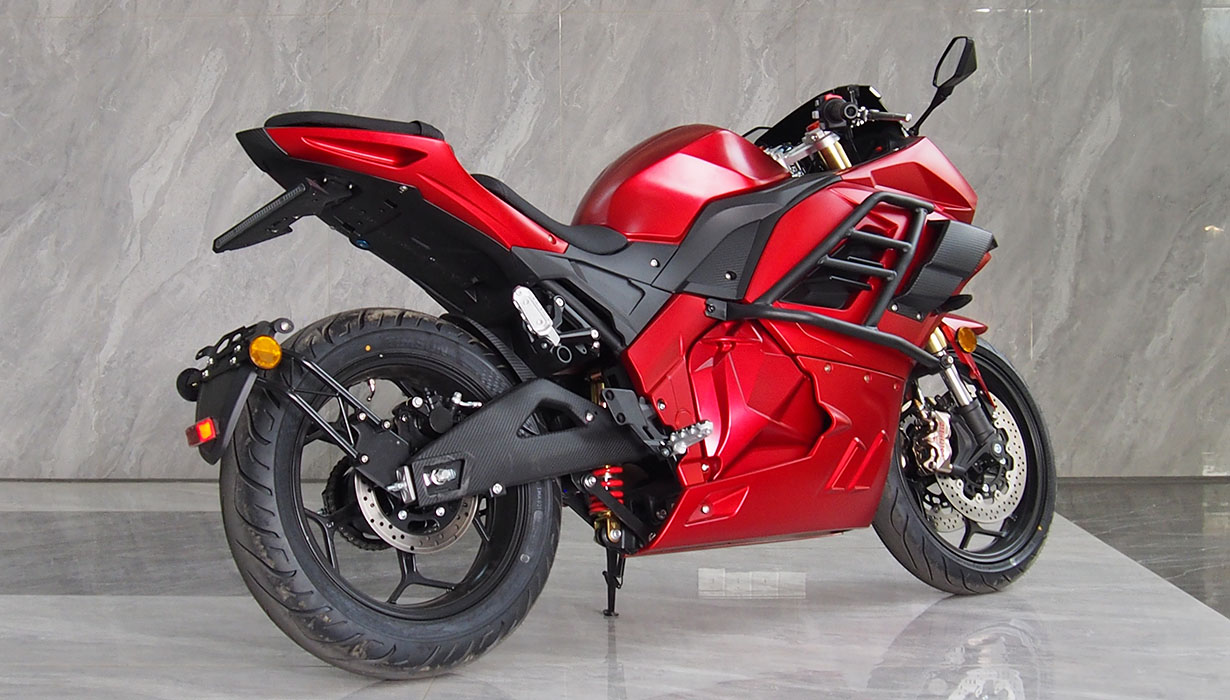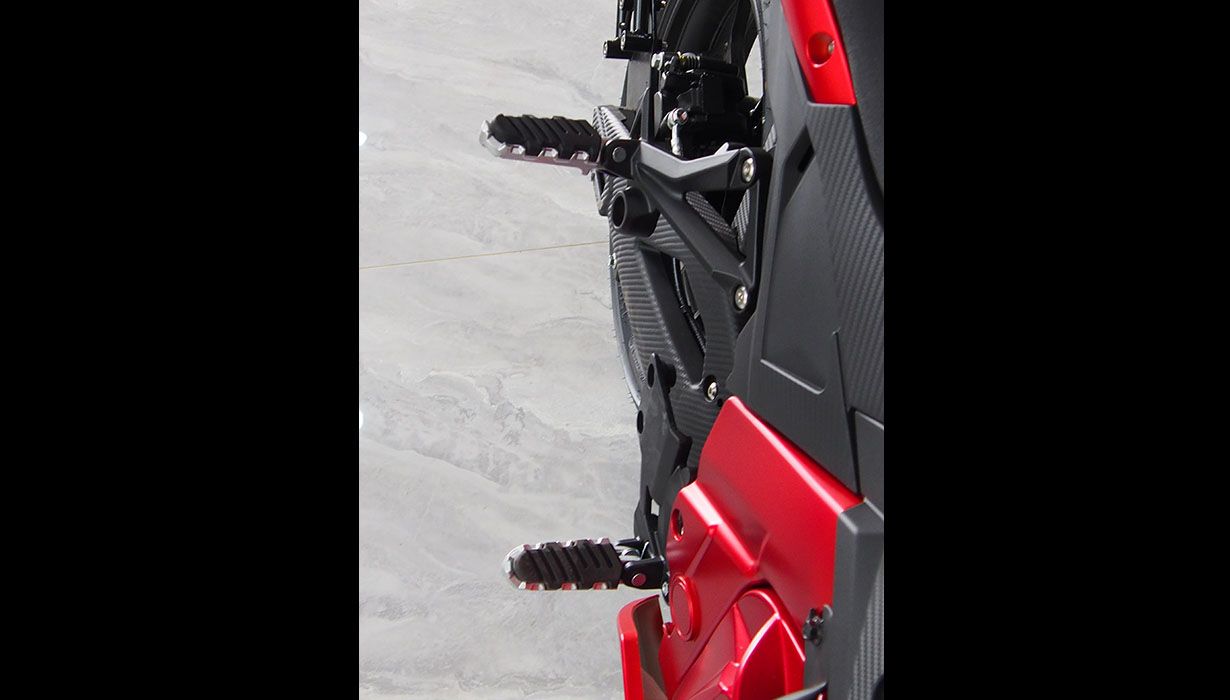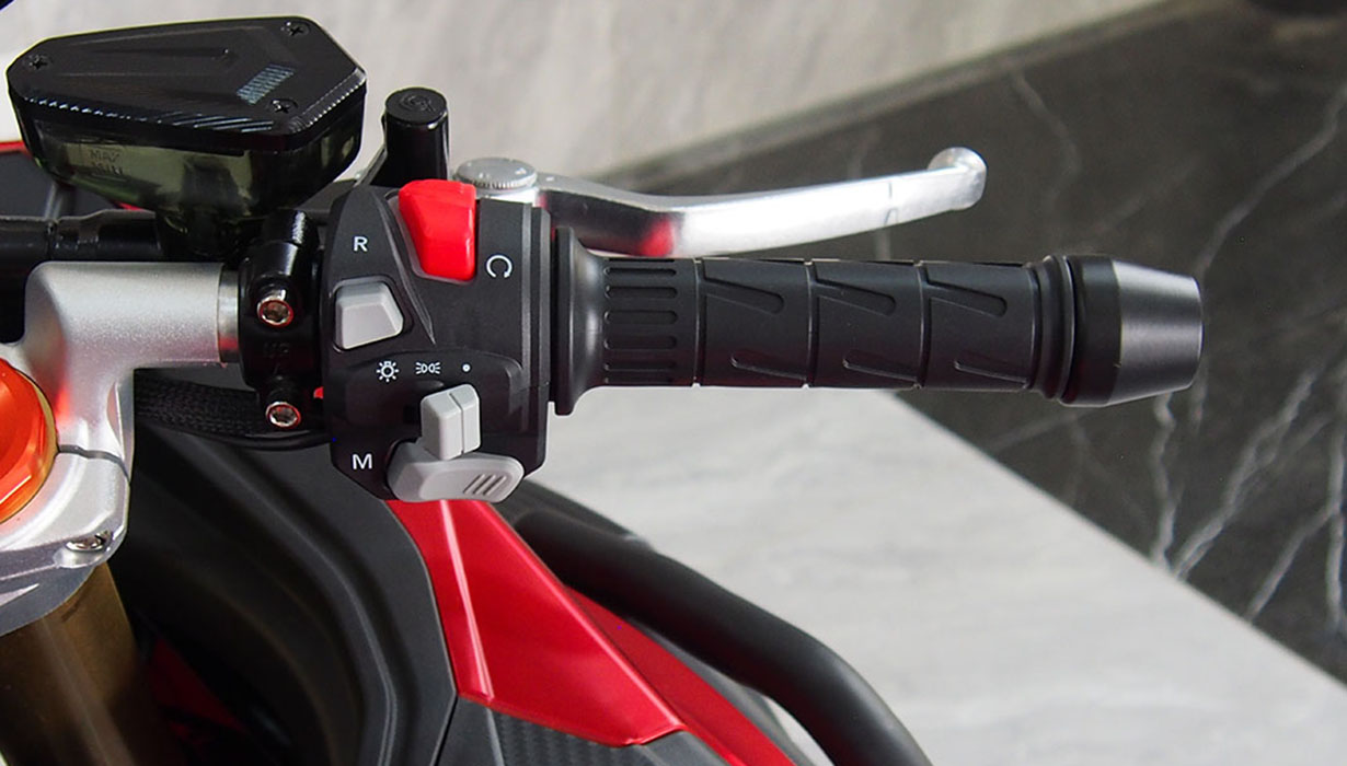 Vi har redusert funksjonene og applikasjonene som bruker energi når kjøretøyet er av, til et absolutt minimum. Dette betyr at du ikke trenger å bekymre deg for om motorsykkelen vil starte på nytt om våren. Vi har eliminert regenerativ bremsing på grunn av systemets svært lave effektivitet, gitt motorsykkelens lave vekt. Beregninger indikerte at energigjenvinningen ville være en brøkdel av en prosent. Gasspedalsystemet er utstyrt med en kabeldrevet mekanisme for å oppnå en naturlig følelse, lik den på en klassisk motorsykkel. Opplyste, fuktbestandige brytere gjør det morsommere å bruke motorsykkelen mens du kjører. En kraftig 2200W innebygd lader lar deg lade motorsykkelen fra et standard 10A strømuttak under alle forhold. En full ladetid på omtrent 4 timer. 8,2 kWh Li-ion-batteriet har den høyeste kapasiteten på markedet i denne prisklassen. Det gir en rekkevidde på opptil 130–140 km i høye hastigheter. I byforhold, ved lavere hastigheter, kan det nå opptil 160–180 km. En optimalisert drivenhet og motorstyring muliggjør hastigheter på opptil 130 km/t. Selv med et batteri utladet til 20 % kan motorsykkelen nå hastigheter på over 100 km/t. Parameterne ovenfor er basert på en prøvetur med en fører som veier omtrent 80 kg. Detaljerte parametere for norske forhold vil bli tilgjengelige snart. CBS-bremsesystemet, utstyrt med flytende bremseskiver og firestempelbremsekalipere, fungerer effektivt, noe som resulterer i jevn og sikker håndtering. Den komfortabelt justerte fjæringen håndterer godt humper. Motorsykkelen er også egnet for førere av kortere vekst.