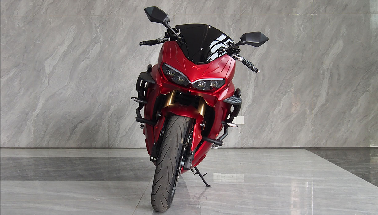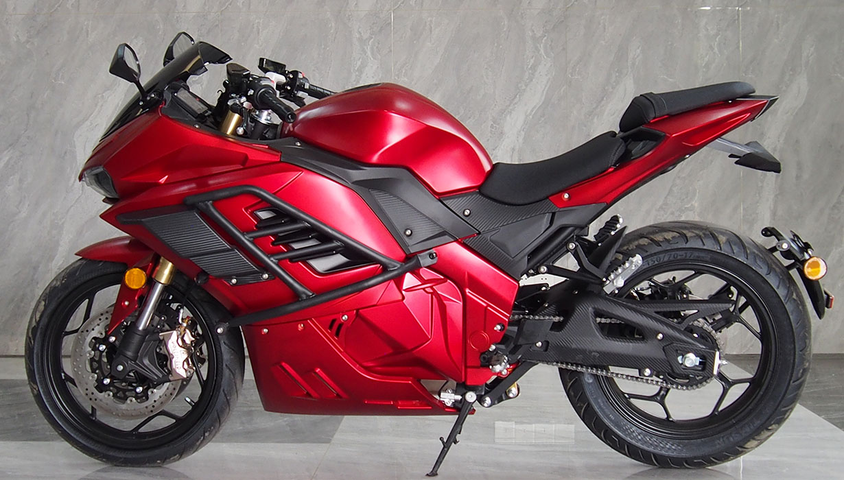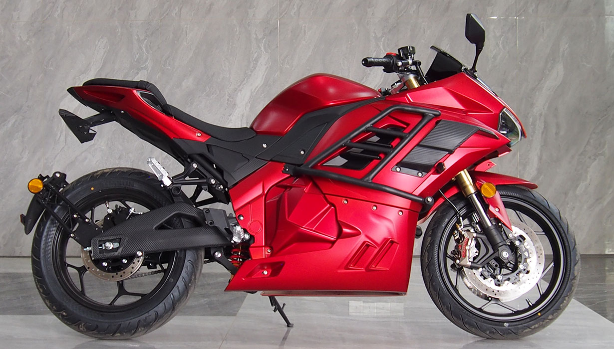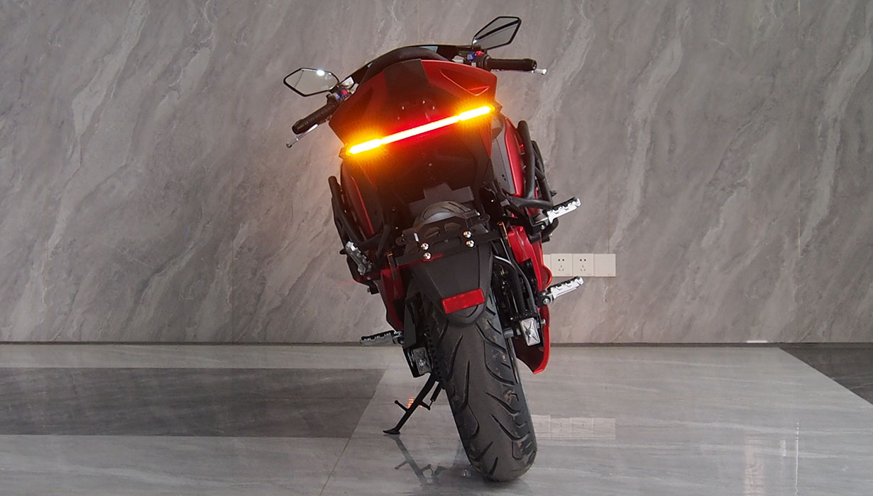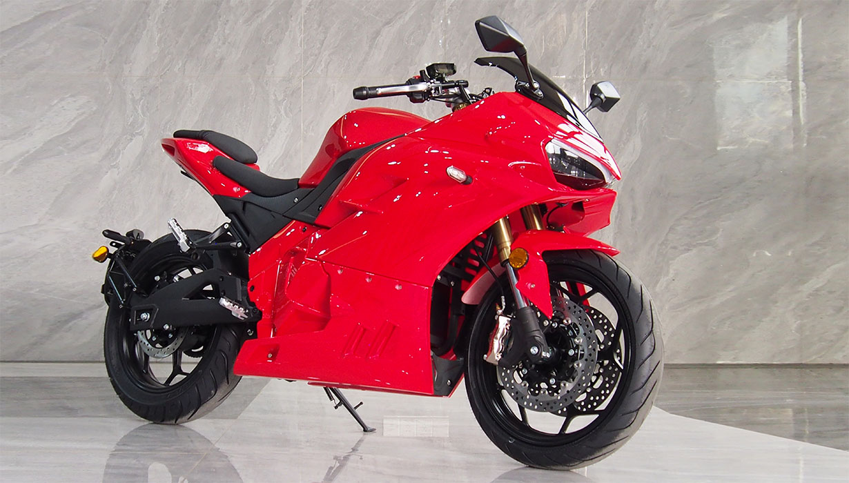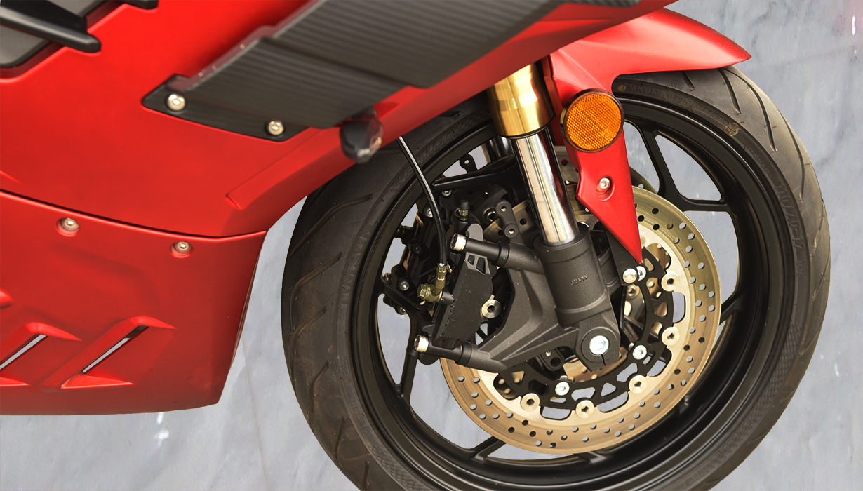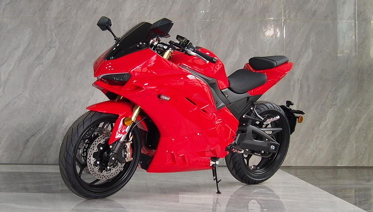 Vi har redusert funksjonene og applikasjonene som bruker energi når kjøretøyet er av, til et absolutt minimum. Dette betyr at du ikke trenger å bekymre deg for om motorsykkelen vil starte på nytt om våren. Vi har eliminert regenerativ bremsing på grunn av systemets svært lave effektivitet, gitt motorsykkelens lave vekt. Beregninger indikerte at energigjenvinningen ville være en brøkdel av en prosent. Gasspedalsystemet er utstyrt med en kabeldrevet mekanisme for å oppnå en naturlig følelse, lik den på en klassisk motorsykkel. Opplyste, fuktbestandige brytere gjør det morsommere å bruke motorsykkelen mens du kjører. En kraftig 2200W innebygd lader lar deg lade motorsykkelen fra et standard 10A strømuttak under alle forhold. En full ladetid på omtrent 4 timer. 8,2 kWh Li-ion-batteriet har den høyeste kapasiteten på markedet i denne prisklassen. Det gir en rekkevidde på opptil 130–140 km i høye hastigheter. I byforhold, ved lavere hastigheter, kan det nå opptil 160–180 km. En optimalisert drivenhet og motorstyring muliggjør hastigheter på opptil 130 km/t. Selv med et batteri utladet til 20 % kan motorsykkelen nå hastigheter på over 100 km/t. Parameterne ovenfor er basert på en prøvetur med en fører som veier omtrent 80 kg. Detaljerte parametere for norske forhold vil bli tilgjengelige snart. CBS-bremsesystemet, utstyrt med flytende bremseskiver og firestempelbremsekalipere, fungerer effektivt, noe som resulterer i jevn og sikker håndtering. Den komfortabelt justerte fjæringen håndterer godt humper. Motorsykkelen er også egnet for førere av kortere vekst.